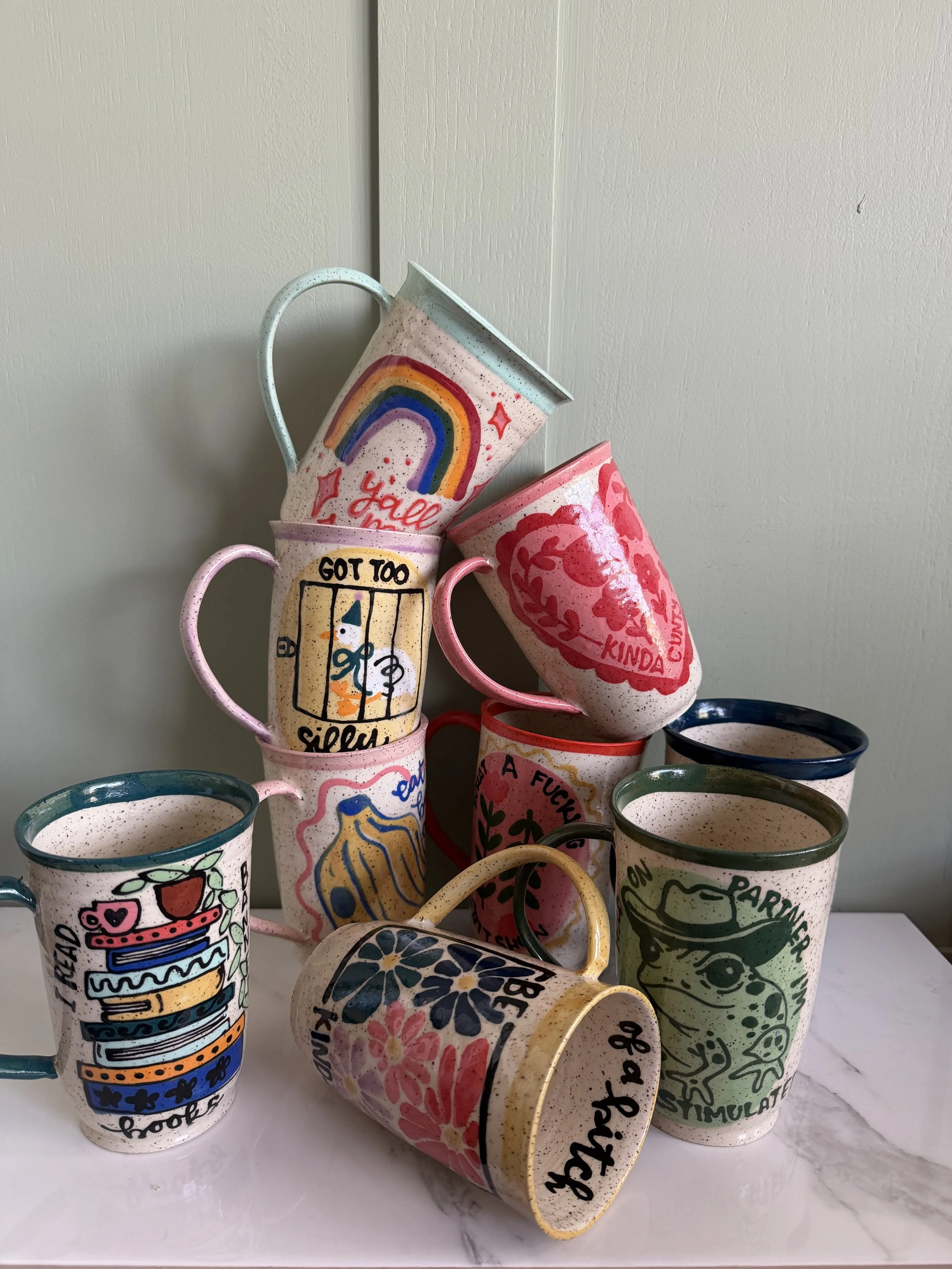 PKY Arts Shop Now Handmade pottery to spice up your everyday. New super comfy Jug Mugs Vases Trays Potty Mouth Mugs Spoon Rests